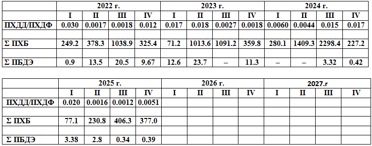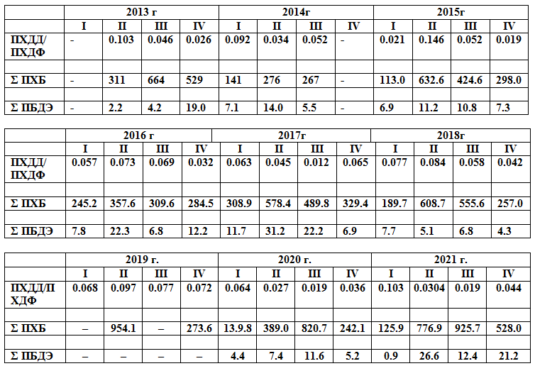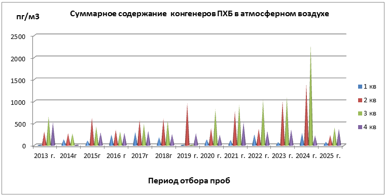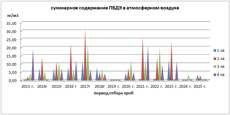 Содержание ПХДД/ПХДФ (в «диоксиновом эквиваленте токсичности»), а также суммарное содержание ПХБ и ПБДЭ в атмосферном воздухе г. Обнинск, пг/м3